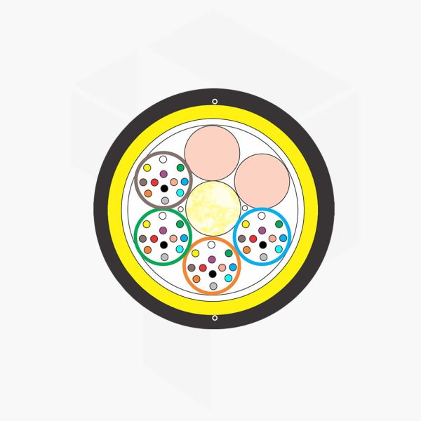 Cable dieléctrico autosoportado. Construido con tubos holgados de PBT rellenos con gel donde se alojan los hilos de fibra, y se organizan alrededor de un miembro central de FRP, junto con material de relleno y componentes que bloquean el ingreso del agua. Dependiendo de la resistencia deseada se refuerza con hilos de aramida y se extruye con funda de PE negro.