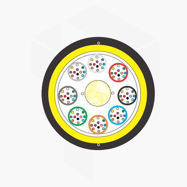 Cable dieléctrico autosoportado. Construido con tubos holgados de PBT rellenos con gel donde se alojan los hilos de fibra, y se organizan alrededor de un miembro central de FRP, junto con material de relleno y componentes que bloquean el ingreso del agua. Dependiendo de la resistencia deseada se refuerza con hilos de aramida y se extruye con funda de PE negro.