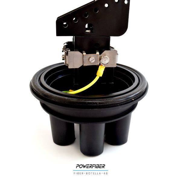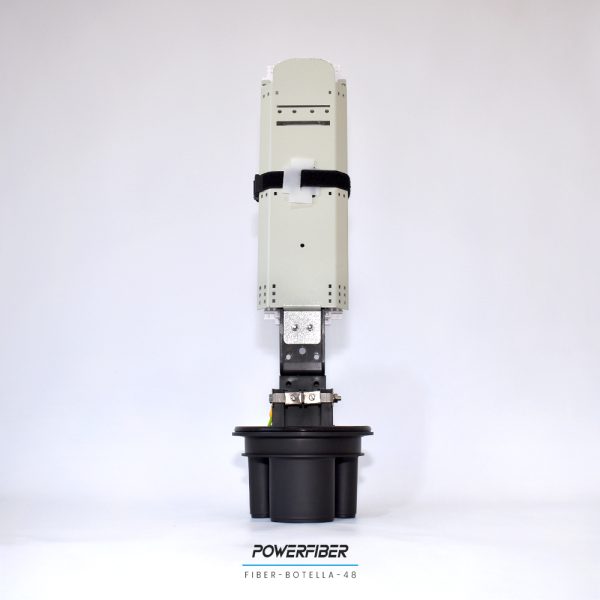 Botella de empalme para 48 fibras con 4 entradas redondas y una oval para sangría. Sistema de empalme para fusiones de fibra óptica. Permite proteger empalmes ópticos y realizar derivaciones con un diseño de reapertura eficiente y rápido. Utilizado en aplicaciones aéreas como en cámaras, su estructura presenta excelente resistencia mecánica capaz de prevenir eficazmente el envejecimiento producto de la temperatura y los rayos UV.