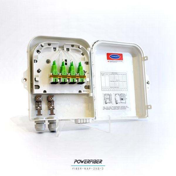 CAJA EXTERIOR FTTH 2X8 CON SPLITTER 1X8 CONECTOR SC/APC + 8 ADAPTADORES